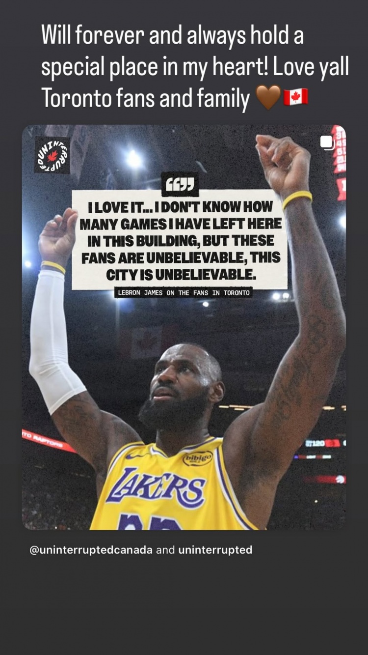 • 詹姆斯致谢多伦多球迷:将永远在我心中占据特殊的位置!我爱你们