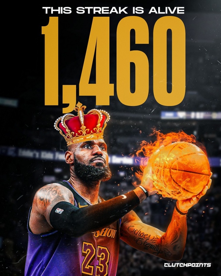 • 角度刁钻!美媒:詹姆斯已连续1460场得分5+ 也是历史最长